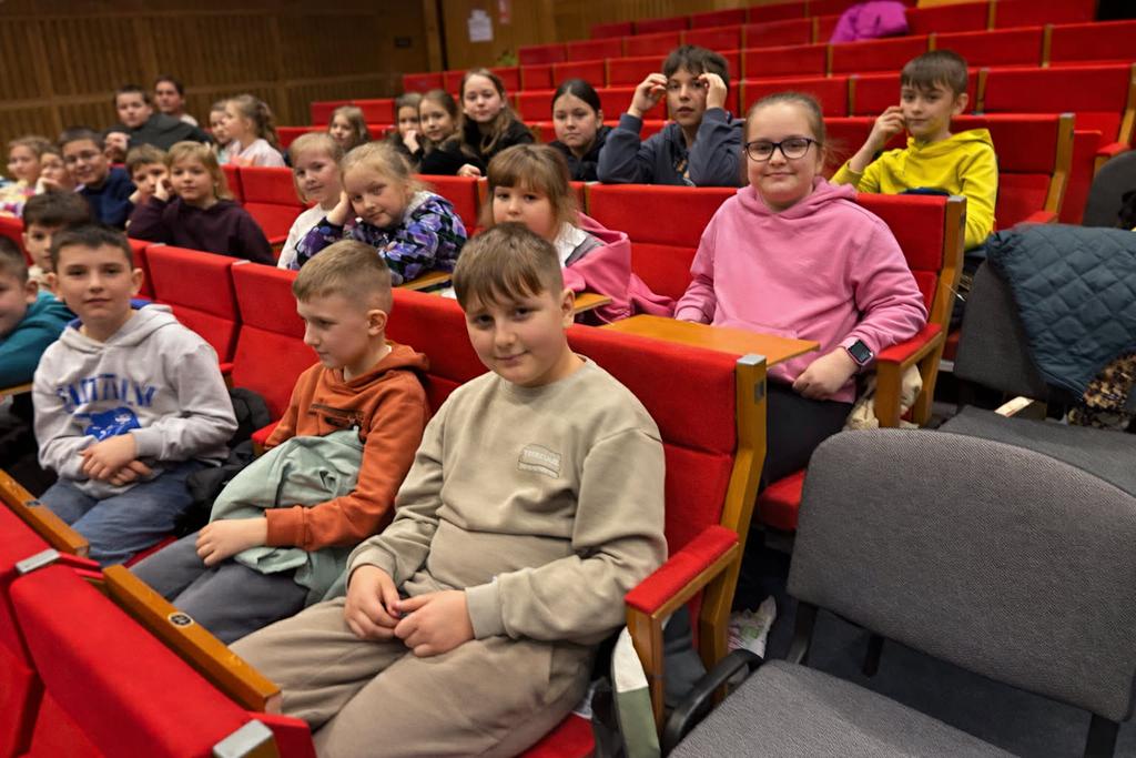 Tuż po śniadaniu przedszkolaki wyruszyły spod szkoły autobusem szkolnym do Białej Podlaskiej, gdzie w budynku Akademii Bialskiej im. Jana Pawła II odbyło się przedstawienie. Dzieci z dużym zainteresowaniem obejrzały wzruszający spektakl w wykonaniu Wrocławskiego Teatru In-Art, inspirowany baśnią J.H. Andersena, który opowiadał o marzeniach, miłości i sile ludzkiego ducha w obliczu samotności i trudów życia . Spektakl dostarczył wielu emocji oraz był okazją do rozmów o wrażliwości, empatii i pomaganiu innym.