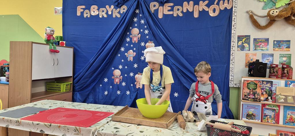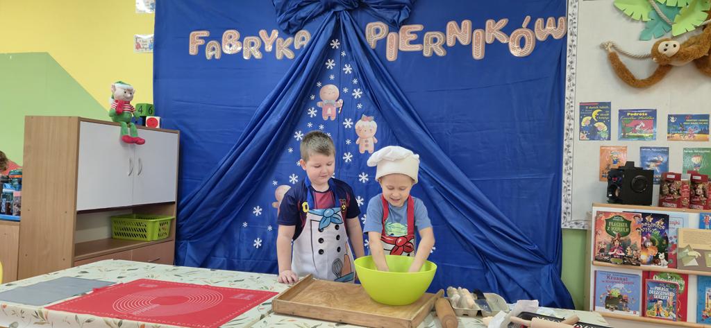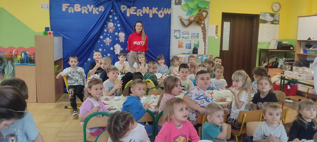 W środę10 grudnia do sali Galaktycznej Drużyny, która tego dnia przemieniła się w prawdziwą Fabrykę Pierników, zawitały najmłodsze przedszkolaki. W przytulnym, ciepłym wnętrzu unosił się zapach korzennych przypraw, wanilii i miodu -ten jedyny, który co roku zwiastuje zbliżające się święta i napełnia serca radością.
