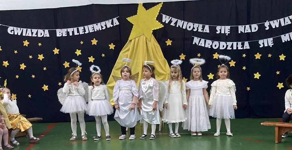 Na przedszkolnej scenie zaprezentowały się dzieci z grup: Gwiezdna Drużyna, Słoneczna Drużyna oraz Galaktyczna Drużyna. Najmłodsze przedszkolaki z ogromnym zaangażowaniem wcieliły się w role migoczących gwiazdeczek, starsze dzieci wystąpiły jako Aniołowie i Pasterze. Nie zabrakło również Trzech Króli, św. Józefa i Maryi, którzy wspólnie stworzyli wzruszającą opowieść o narodzinach Dzieciątka Jezus. Całość dopełniły przepiękne pastorałki, które wprowadziły zebranych w ciepły, świąteczny nastrój.