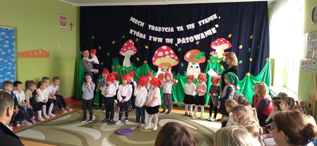 Zebranych gości oraz gospodarzy uroczystości, czyli Krasnale, Skrzaty i Elfy powitała z uśmiechem pani dyrektor Katarzyna Krawczyk. Uroczystość rozpoczęła się wzruszającym występem dzieci, które z ogromnym zaangażowaniem zaśpiewały piosenki i powiedziały wierszyki. Na zakończenie głośno odśpiewały rodzicom "Sto lat" i wręczyły przygotowane upominki. Publiczność – rodzice, rodzeństwo i bliscy – nagrodziła małych artystów gromkimi brawami!